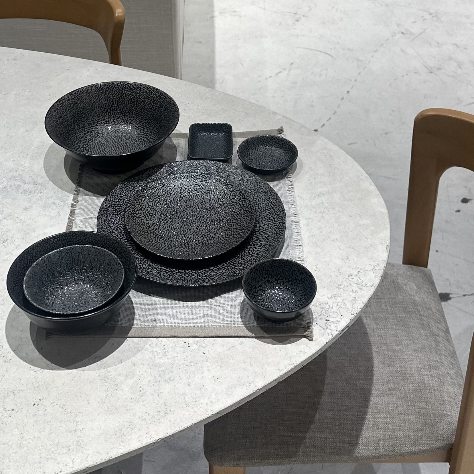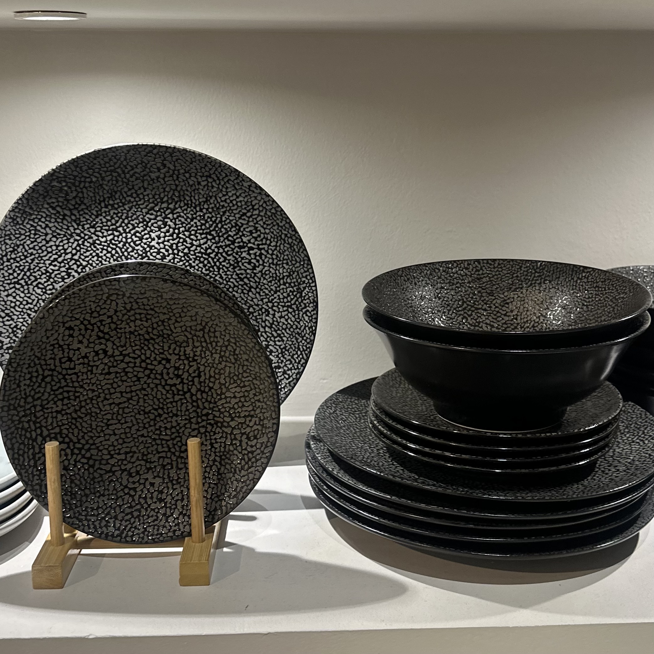 آیتم ها : 2 عدد بشقاب،2عدد پیش دستی،2عدد کاسه ،2عدد پیاله ، 2 عدد پیاله کوچک، 1 عدد مزه خوری مستطیل، 1 مزه خوری عدد دایره