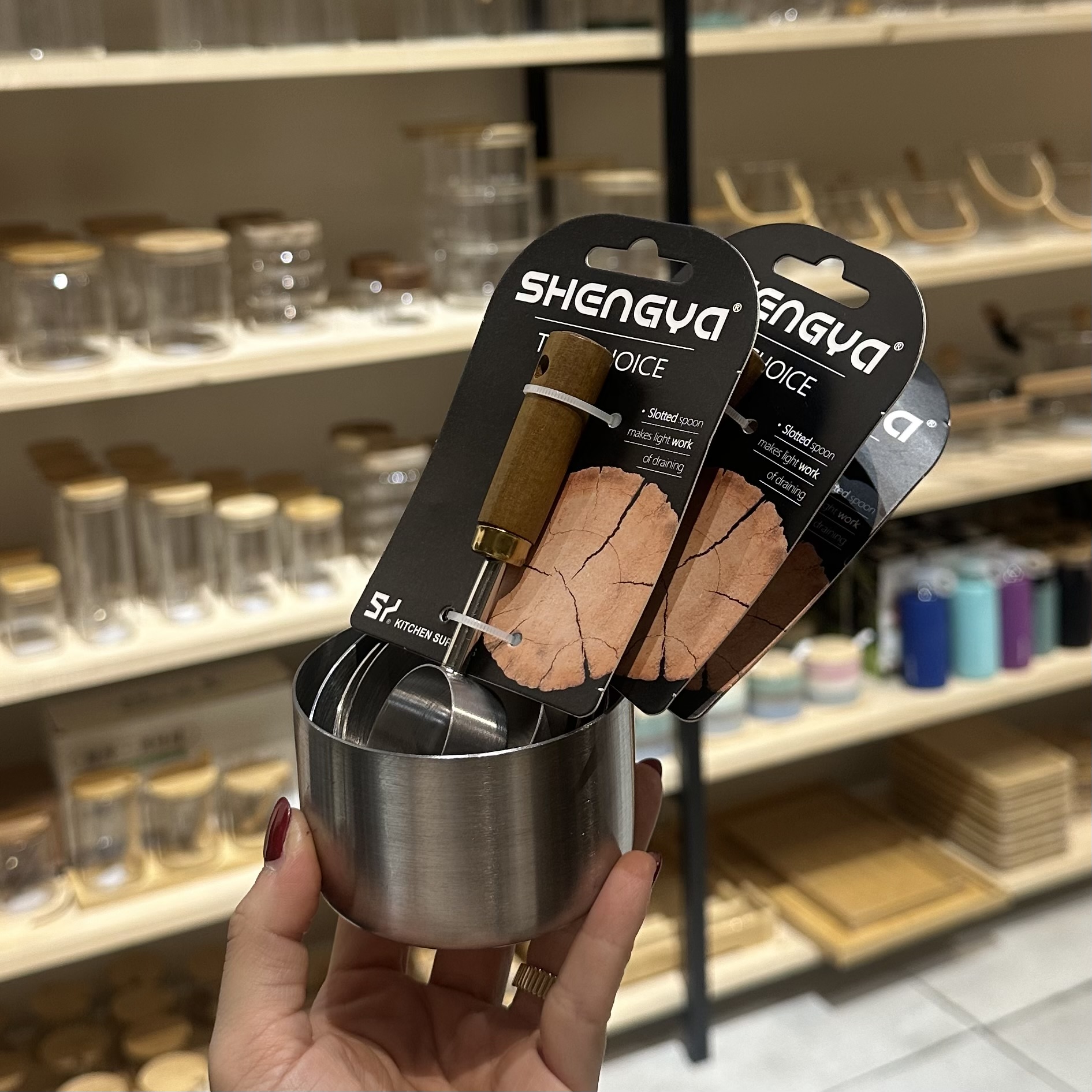 پیمانه استیل دسته چوبی نقره ای